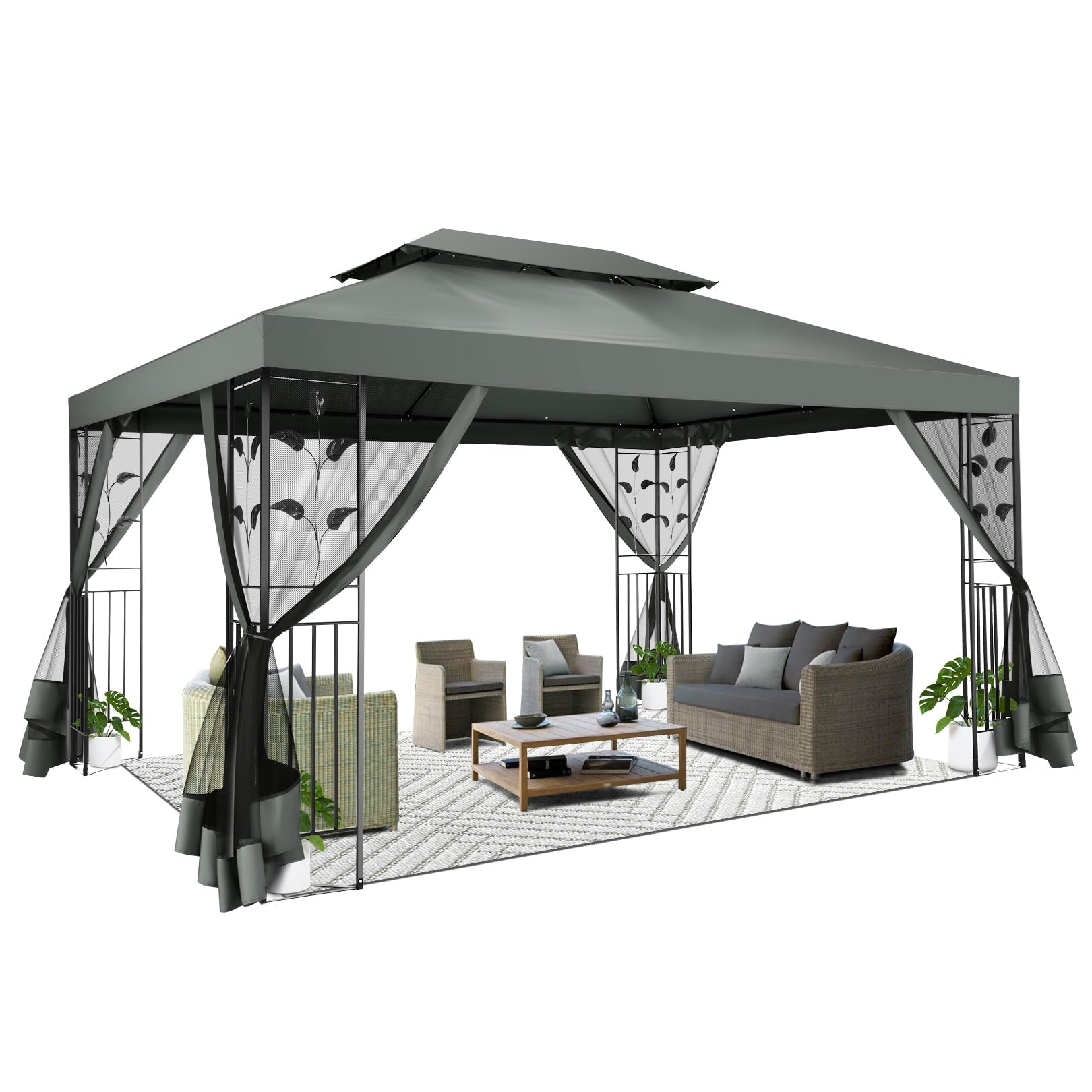 COBIZI 10'x 13' Metal Patio Gazebo, Outdoor Gazebo Canopy Tent for Backyard with Mosquito Netting, Gazebos Shelter with Steel Frame, Patio Covers for Sun and Rain, Gray