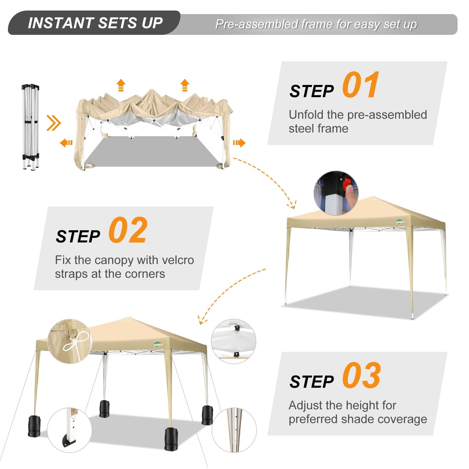 COBIZI 10x10 Ez Pop Up Canopy Tent, Commercial Instant Gazebo Tents for Parties, Waterproof Adjustable Outdoor Patio Backyard Canopy Party Tent,Khaki