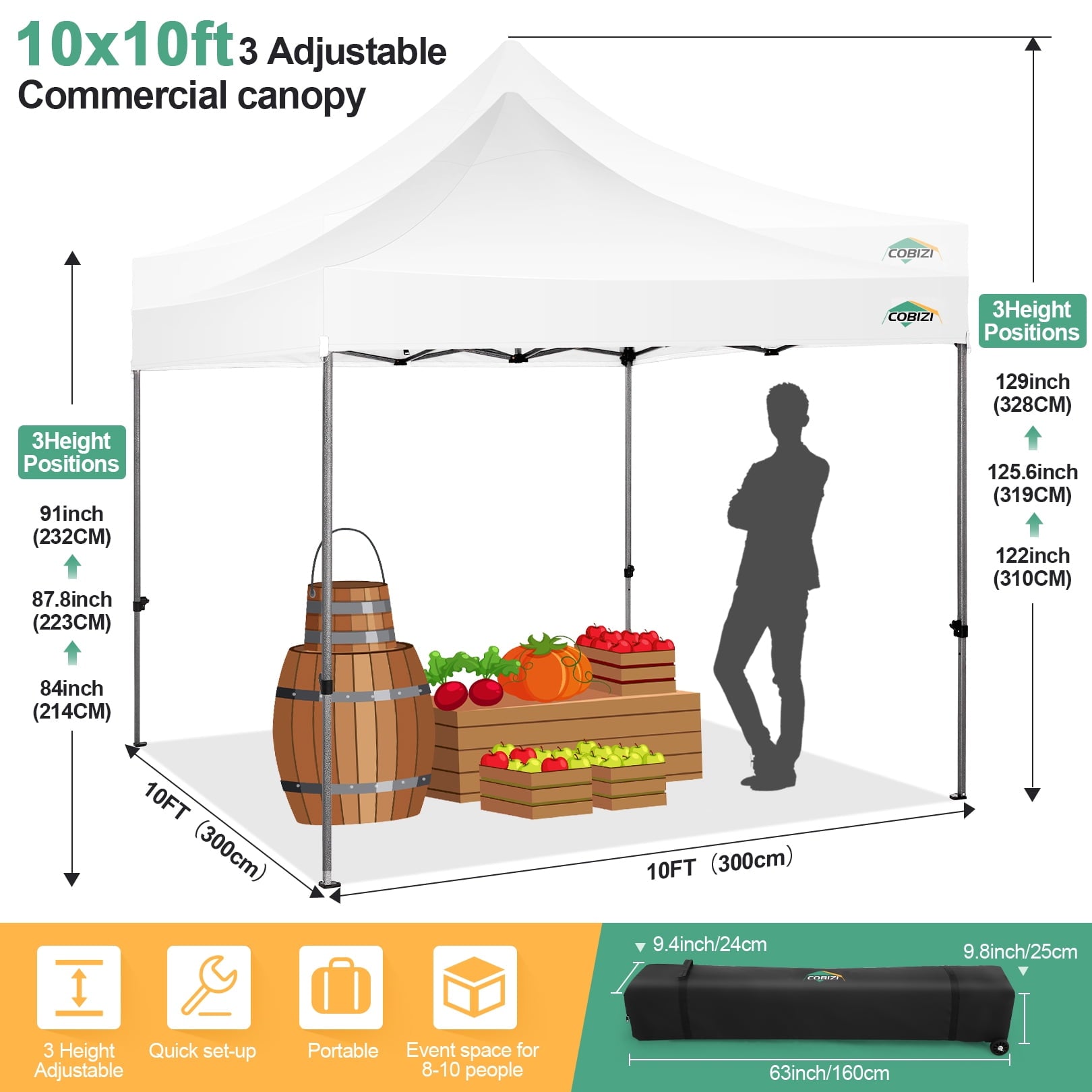 COBIZI 10x10 Pop up Canopy Commercial Heavy Duty Canopy Tent with 4 sidewalls Easy Up Outdoor Party Tent Instant Canopy All Season Windproof & Waterproof Canopy with Roller Bag,White(Frame Thickened)