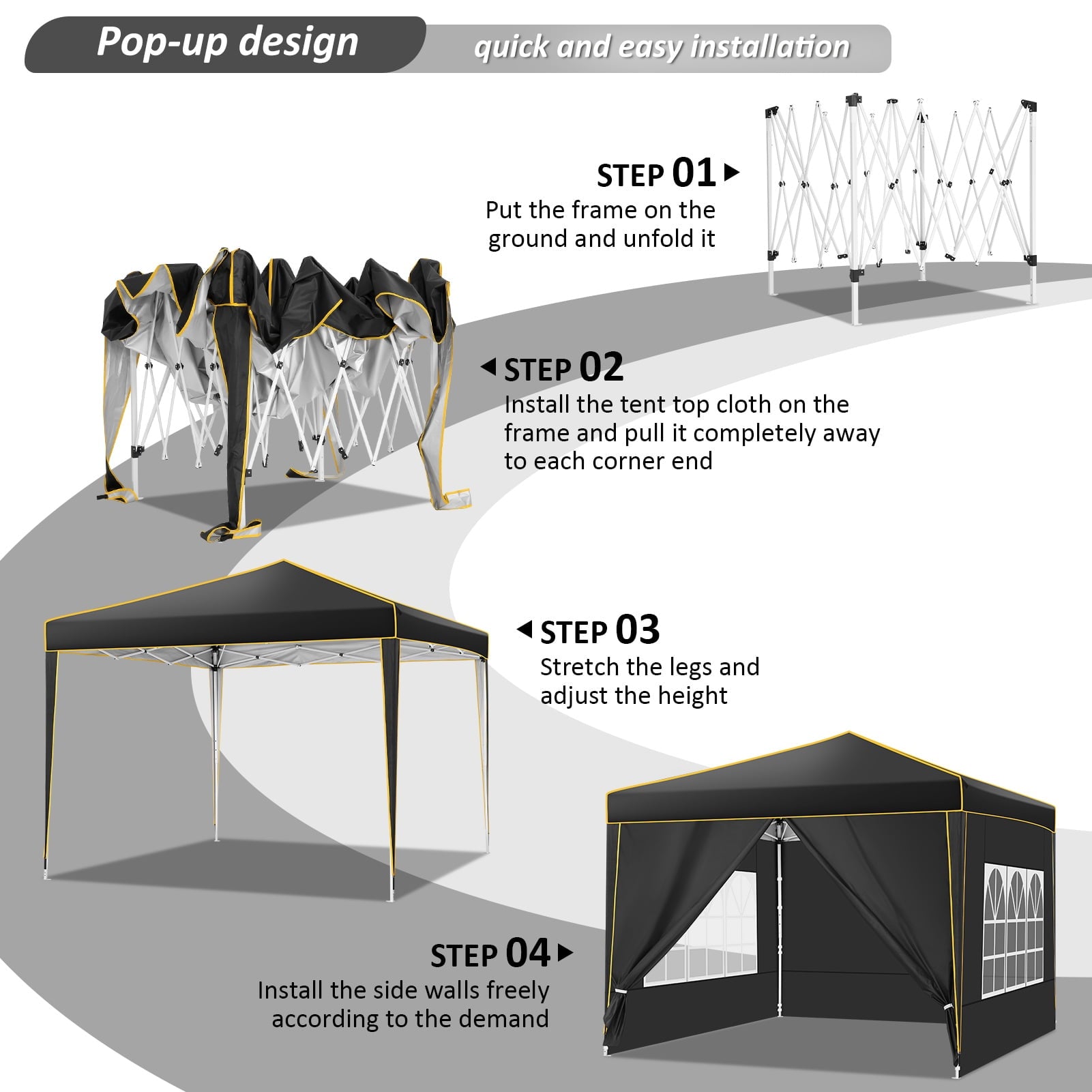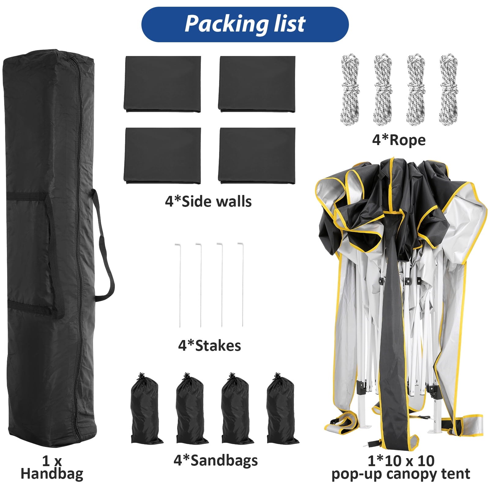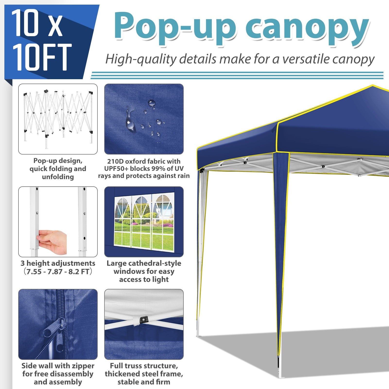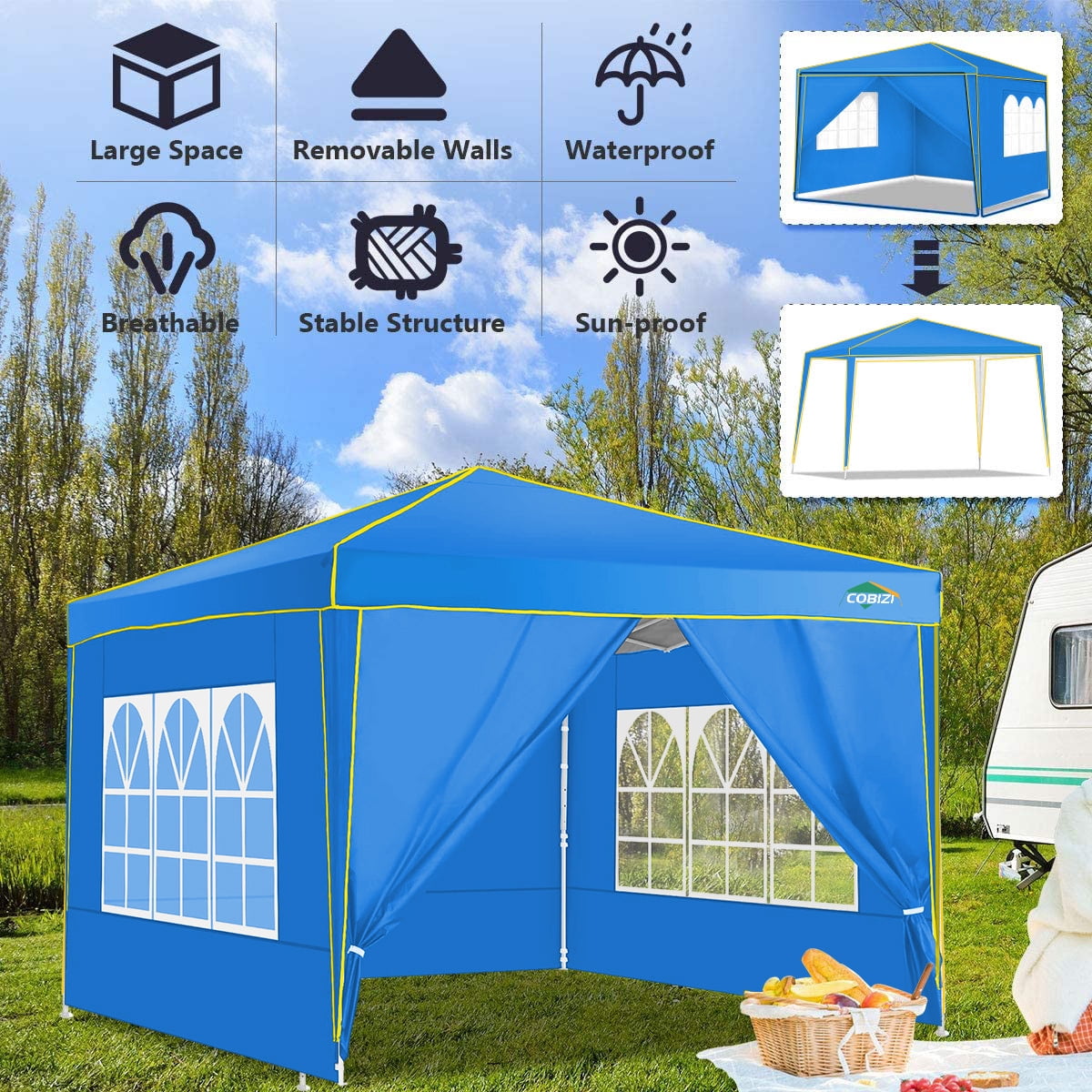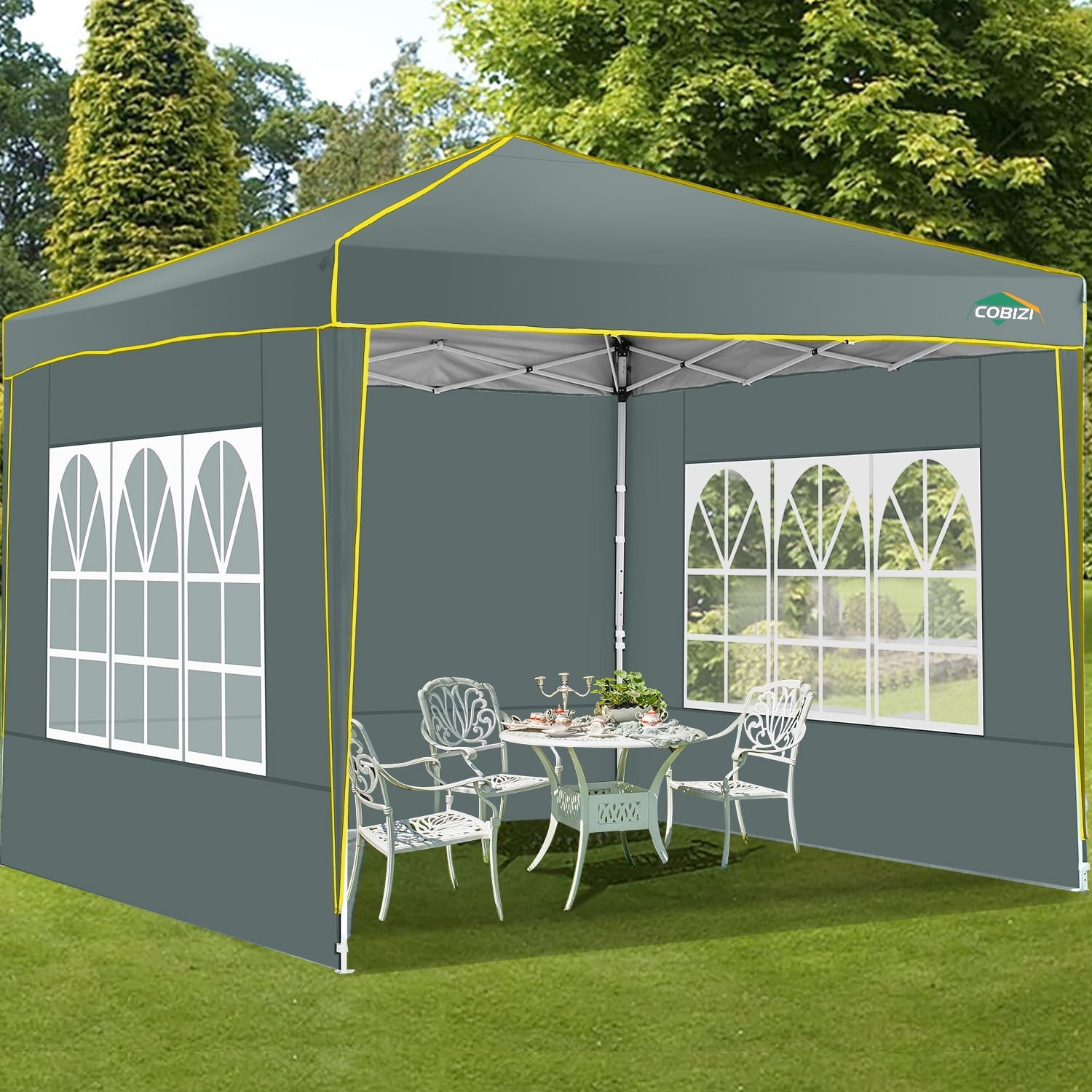 COBIZI 10x10 Pop up Canopy, Easy up Gazebos, Ez up Canopy with Church Window for Parties Beach Party Event Shelter Sun Shade with 4 Sidewalls & Carry Bag 4 Stakes & Ropes & Sandbags, Gray