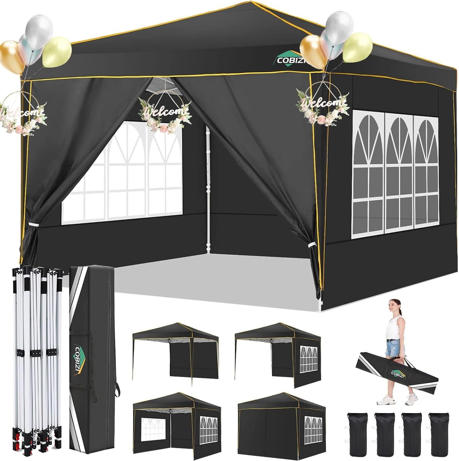 COBIZI 10x10 Pop up Tent,Easy Pop up Tent Gazebo,Portable Ez up Canopy,Suitable for Party Beach Camping Gathering Activities,Waterproof &Upf 50+,Black