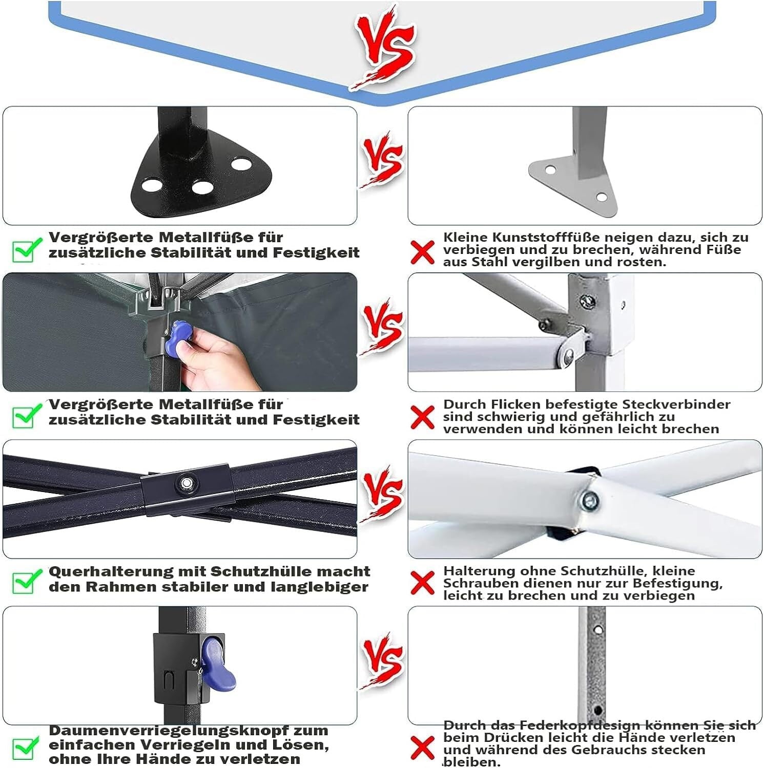 Strong thicker steel structure design, powder coated finishing, Good looking and rust resistance. All the tarpaulin of the pop up canopy is made of high density oxford cloth, with the help of silver-plated PU lining, sealed stitching lines, UPF 50+, it is waterproof and can block 99% of harmful rays of sunlight.COBIZI canopy tent suitable for both sunny and rainy days.