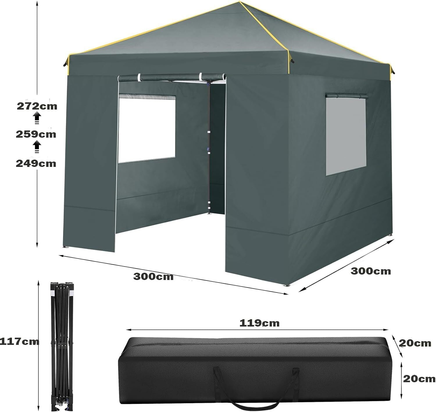 COBIZI 10X10 Pop-up Waterproof Canopy with Mesh Window, Carry Bag, Easy to Carry, 4 Removable Sidewalls, 4 Stakes & Ropes, Outdoor Tents for Party/Exhibition/Picnic,Gray