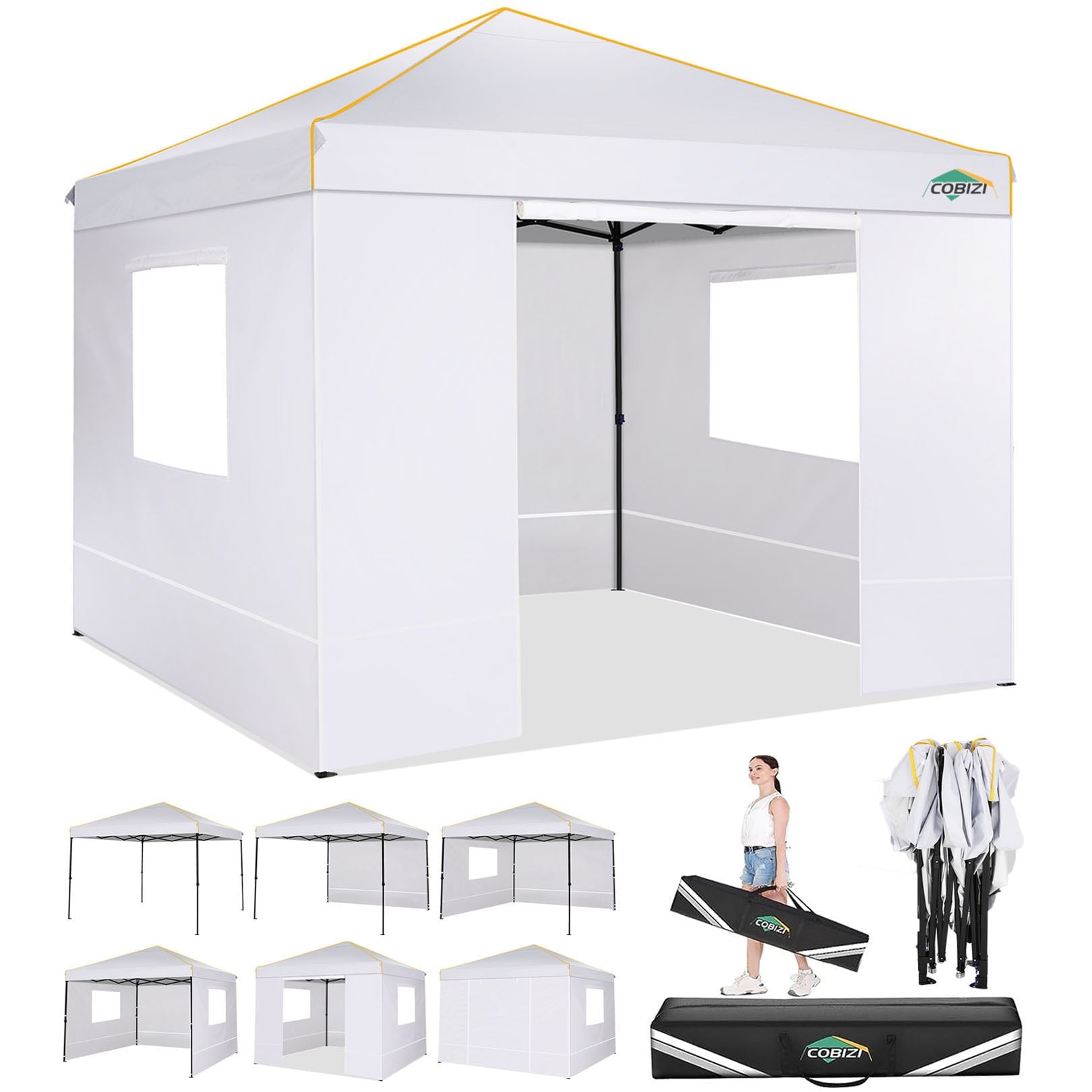COBIZI 10X10 Pop-up Waterproof Canopy with Mesh Window, Carry Bag, Easy to Carry, 4 Removable Sidewalls, 4 Stakes & Ropes, Outdoor Tents for Party/Exhibition/Picnic,White