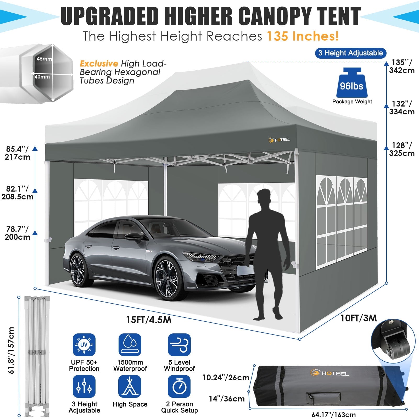 COBIZI 10x15 Pop up Canopy Tent Heavy Duty with 4 Sidewalls Tents for Parties Outdoor Canopy Event Tent Wedding with Roller Bag,Upgraded UV 50+ , Thick Hexagonal Legs, grey