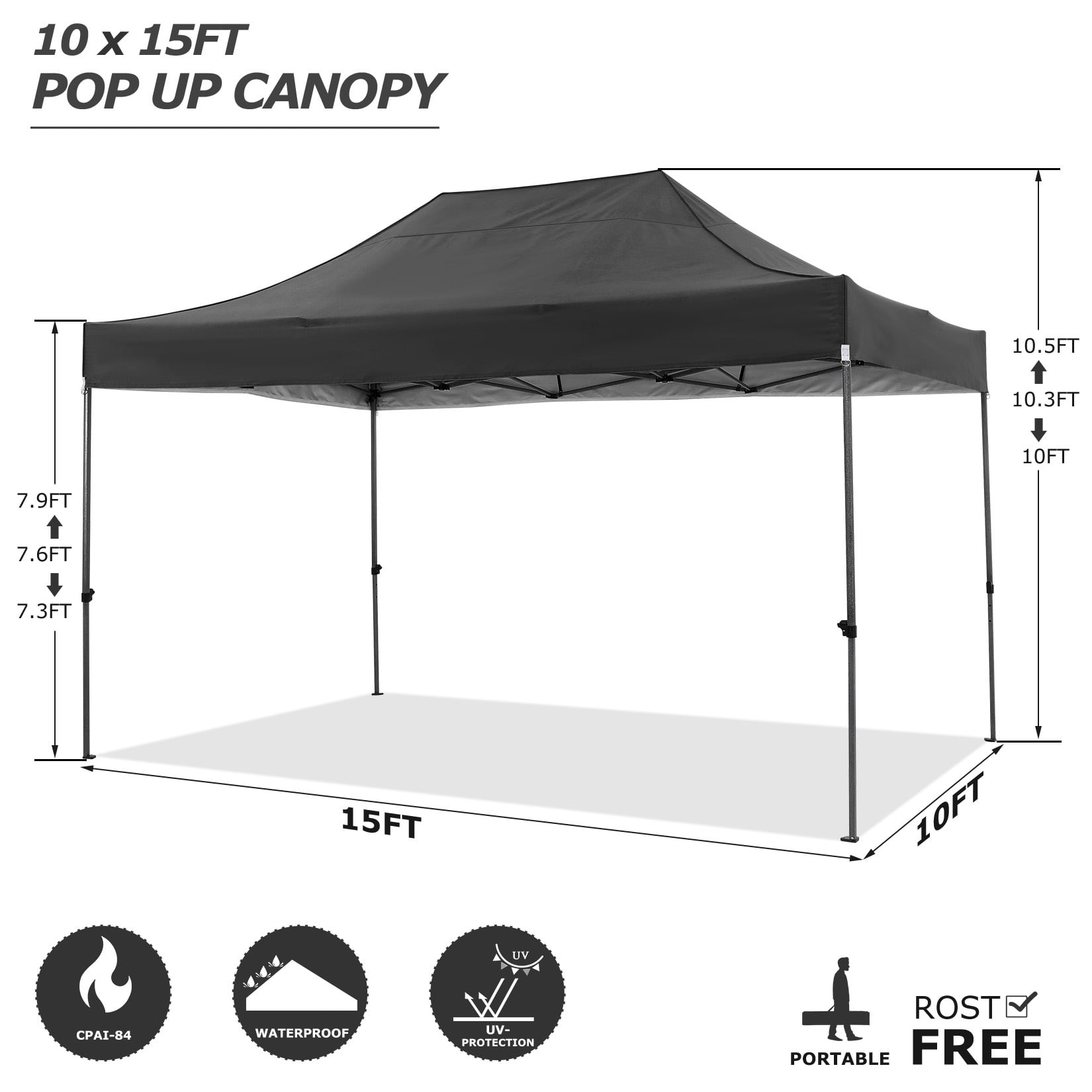 ??: Equipped with practical snap buttons, the 10x15 Pop Up Canopy can be assembled or disassembled by 2-4 people within minutes, without the need for tools. Choose from 3 height settings (222cm - 232cm - 240cm) to find the perfect height. The upgraded thumb latch system is easy to lock and release, ensuring finger protection against pinching.