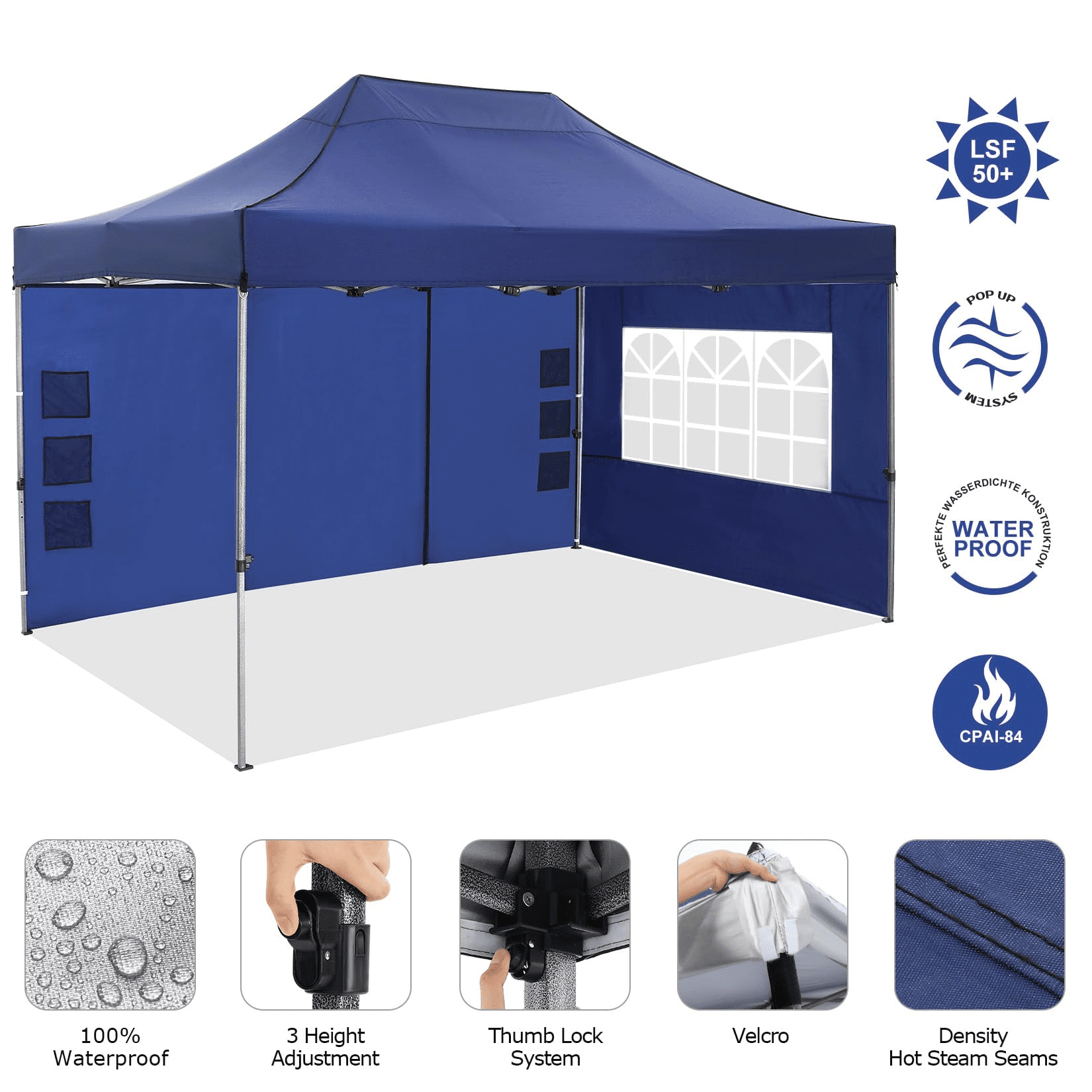 COBIZI 10x15ft Commercial Pop Up Canopy, Waterproof Gazebo with 4 Sidewalls - Blue