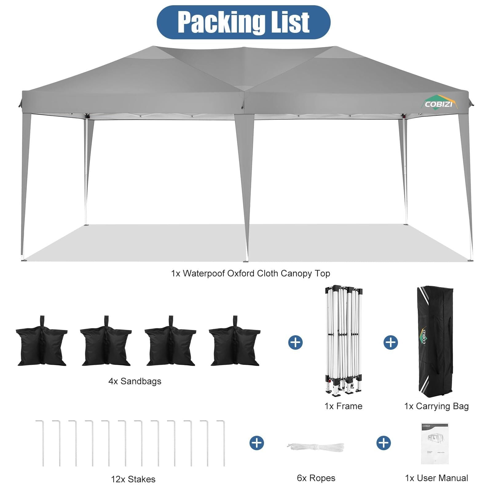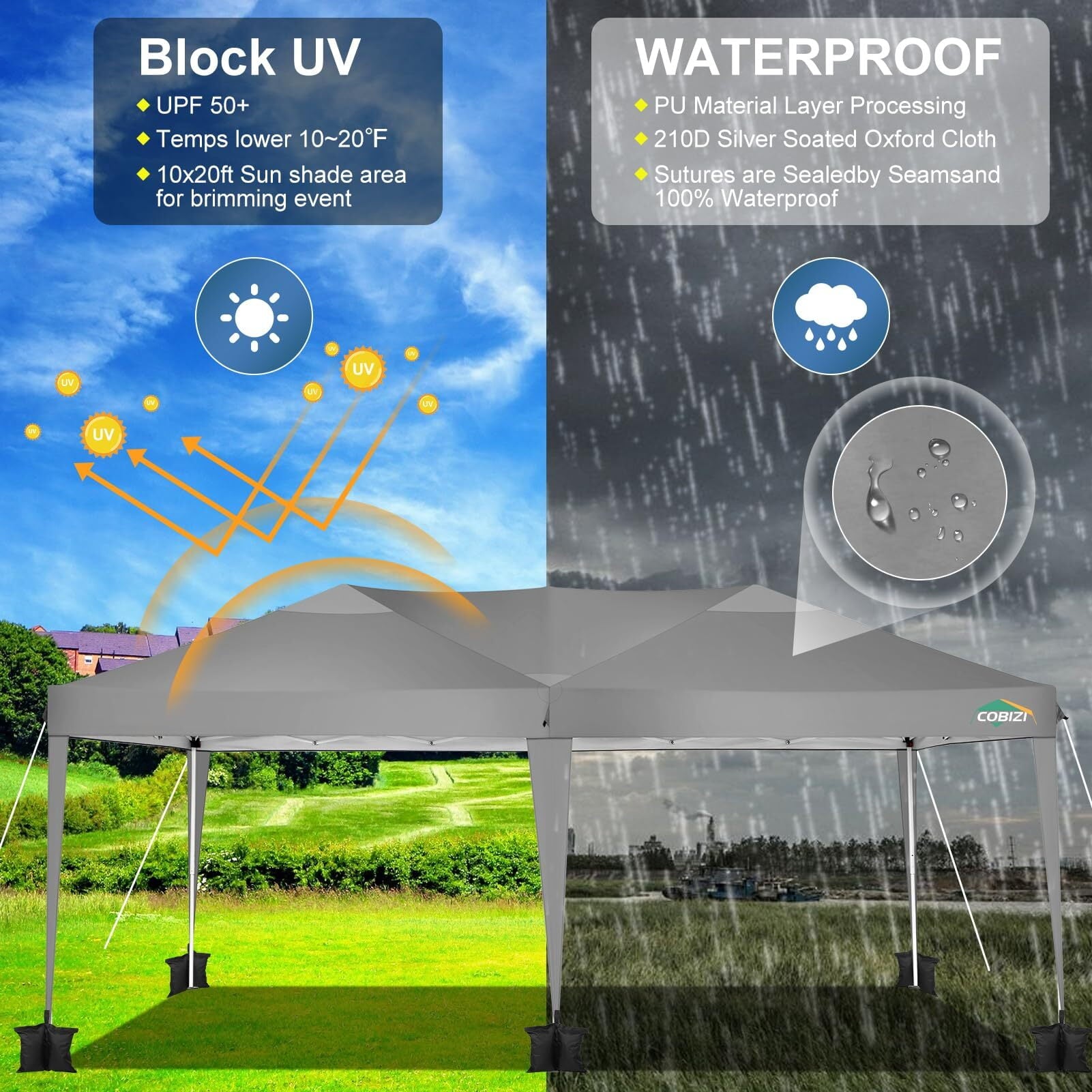COBIZI 10x20 EZ Pop Up Canopy Tent Party Tent Outdoor Event Protable Instant Shelter Tent Gazebo with 6 Removable Sidewalls and Carry Bag,Gray