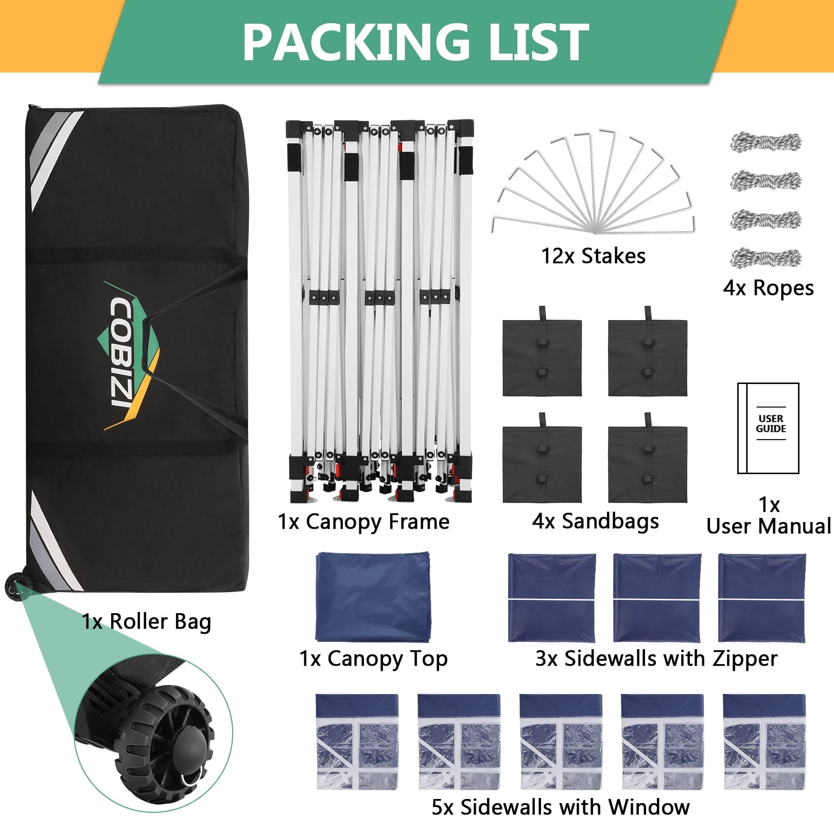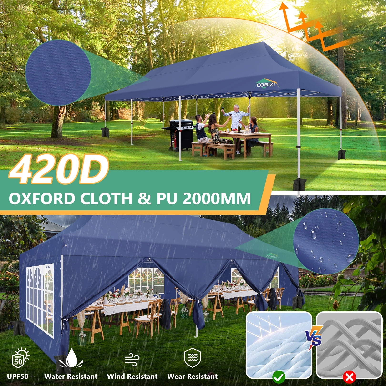 COBIZI 10x30 Pop-up Canopy Outdoor Wedding Party Tent Patio Gazebo Commercial Canopy Tent with Sidewalls Dark Blue
