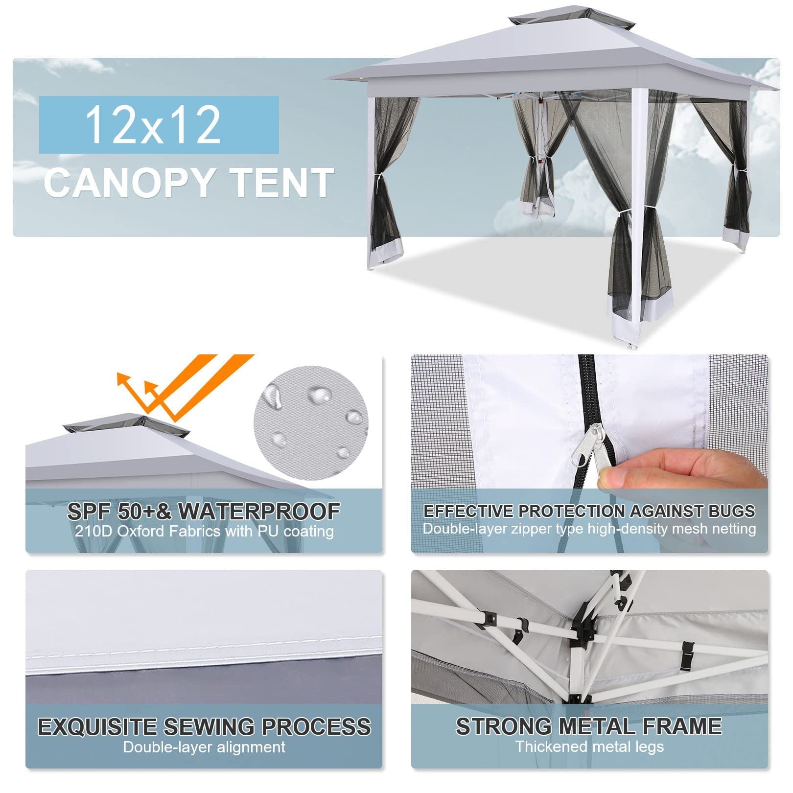 Hoteel 12'x12' Gazebo Tent Outdoor Pop up Gazebo Canopy Shelter with Mosquito Netting, Gray