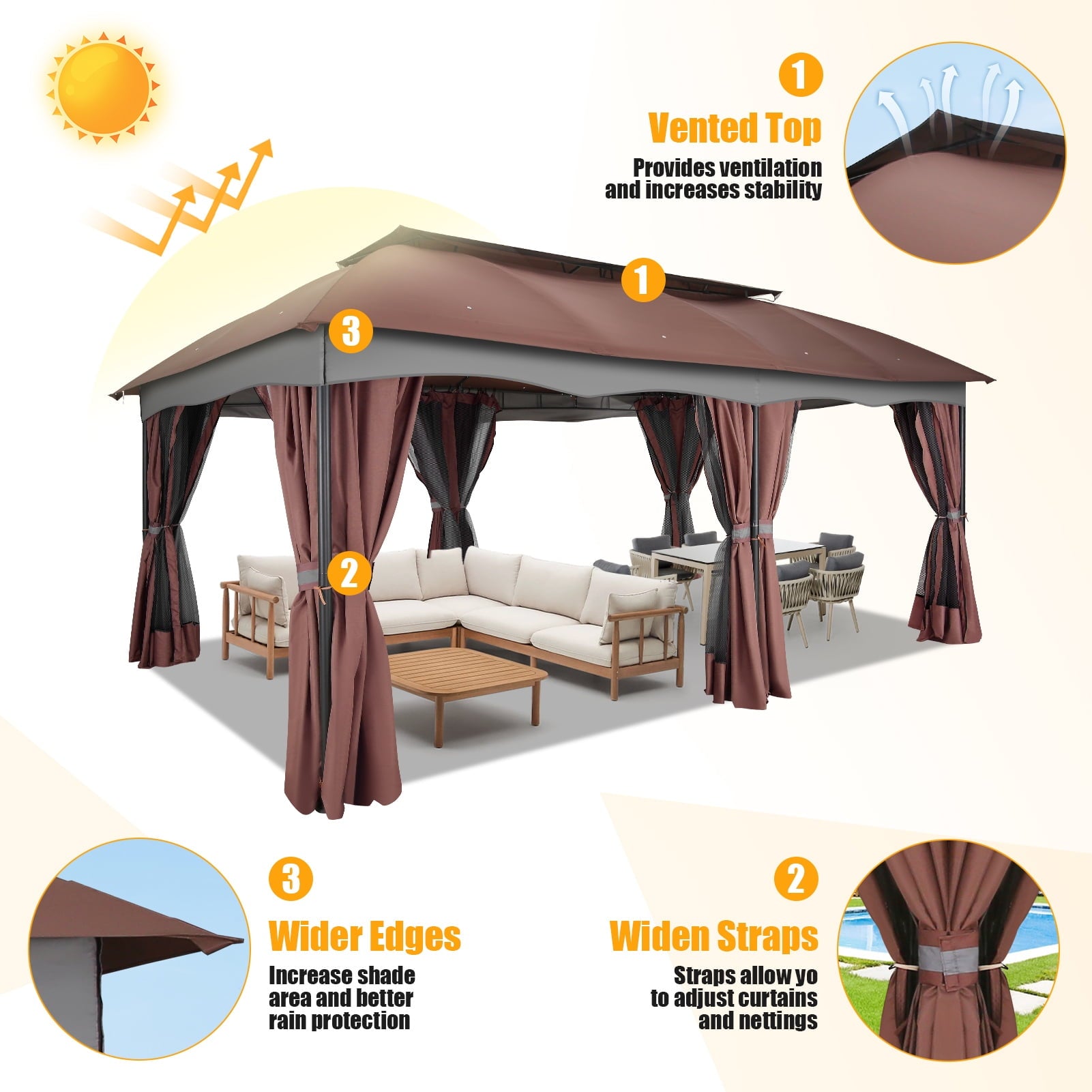 Hoteel 12X20 Heavy Duty Gazebo Outdoor Gazebo with Mosquito Netting and Curtains, Canopy Tent Deck Gazebo with Double-Arc Roof Ventiation and Metal Steel Frame Suitable for Lawn, Backyard, Patio,Brown