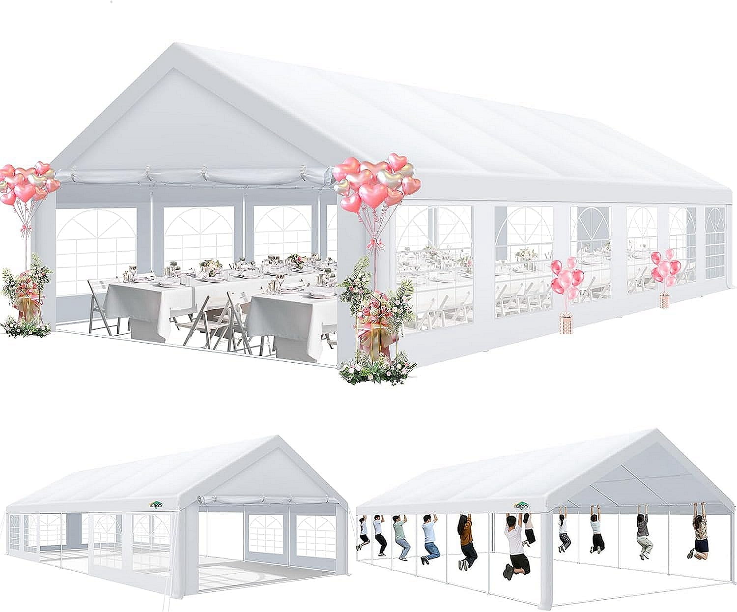 COBIZI 20'x 40' Large Heavy Duty Outdoor Canopy Party Tent & Carport, Upgraded Wedding Event Shelter Gazebo with 8 Removable Sidewalls, Big Tent for Birthday Party, Outdoor Event, Wedding, White