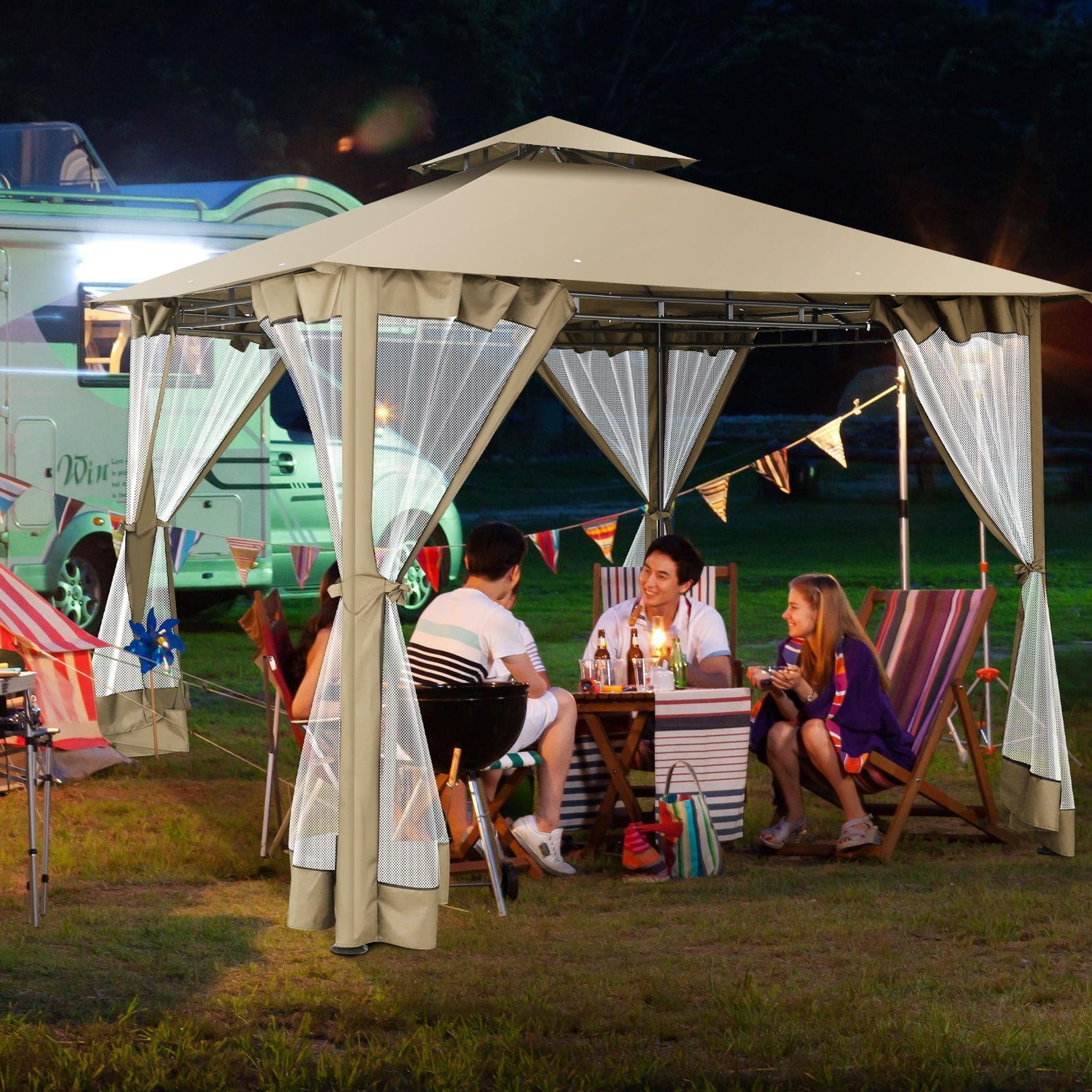 COBIZI Easy Assembly Outdoor Furniture Patio Canopy,10x10 Outdoor Gazebo with Mosquito Netting,Shade Tent for Party, Backyard, Deck, Patio Lawn & Garden,Khaki
