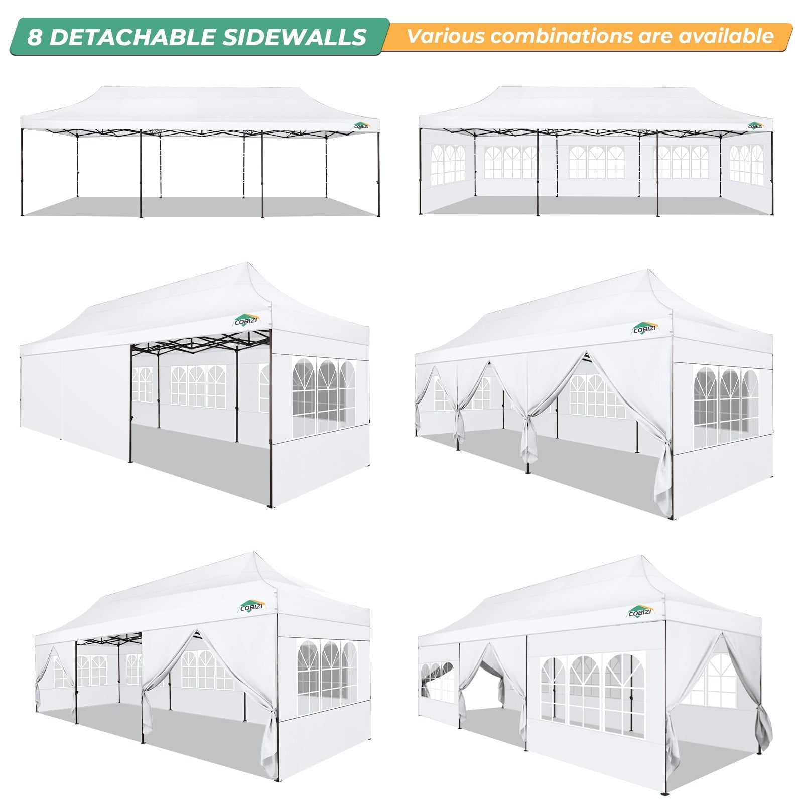 - [Personalized, a variety of use scenarios] This party tent 10x30 heavy equipment provides you with a bag that is carried to facilitate transportation. Cobizi 10x30 heavy pop -up tentopopras are used for party, wedding, barbecue, trade exhibition, sports events, disaster relief or other outdoor activities. The top of the top of the top of the name of the banner sleeve can be customized and personalized to your asylum. Help you attract customers.