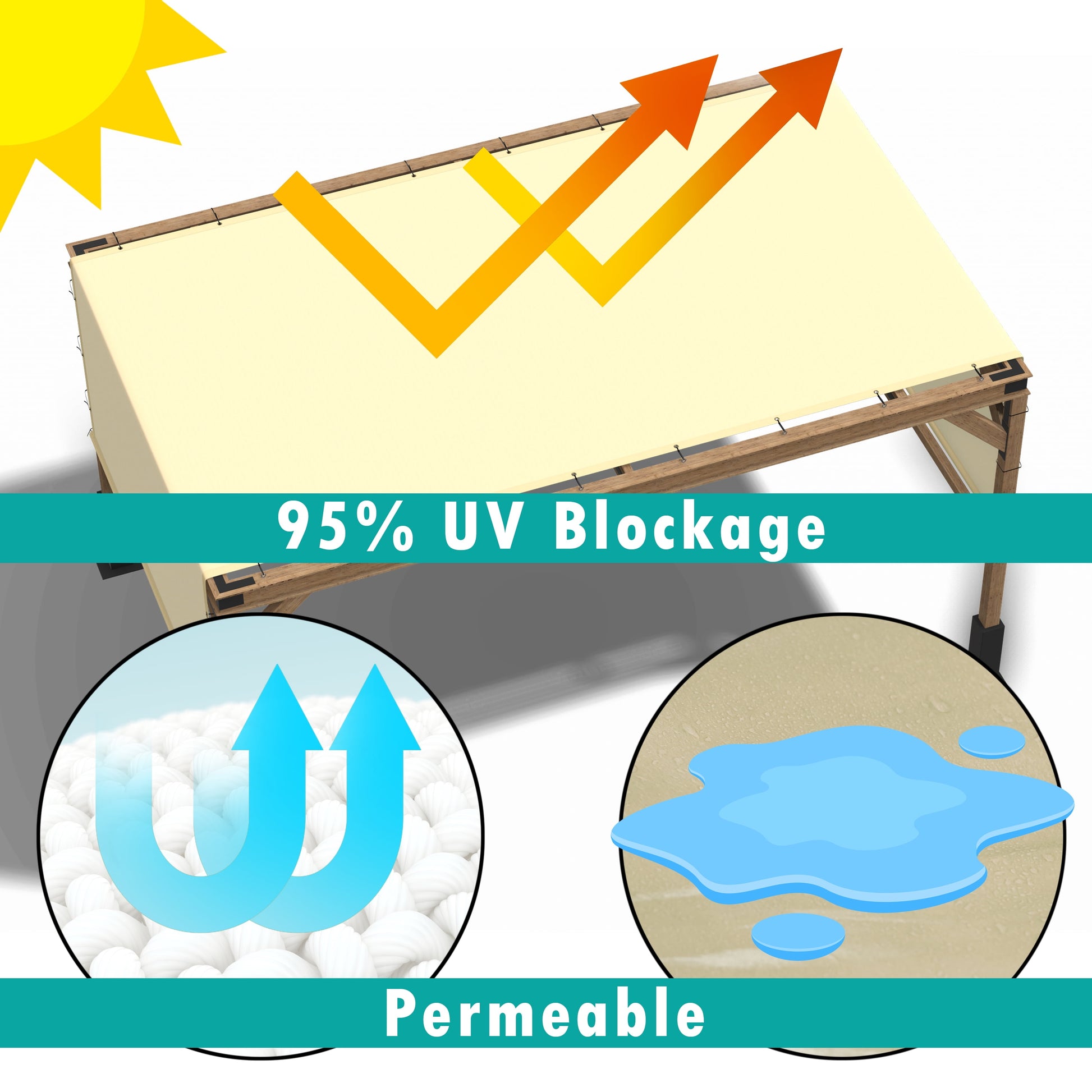 - ¡ï UV and Sun Protection Permeable Material: Stay protected from the sun's harmful rays with our Pergola Cover, blocking up to 95% of UV rays. Its breathable fabric allows air and water to pass through, ensuring comfort in any season.