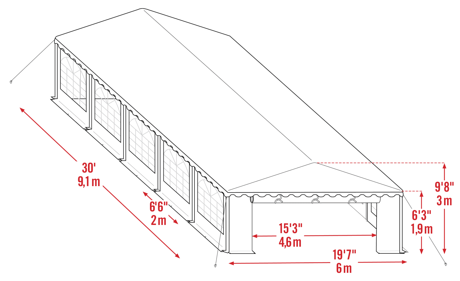 - Sit 60 chairs and up to 6 - 60-inch tables under this party tent.