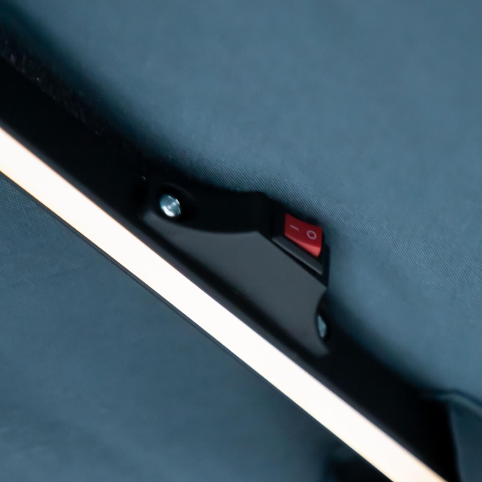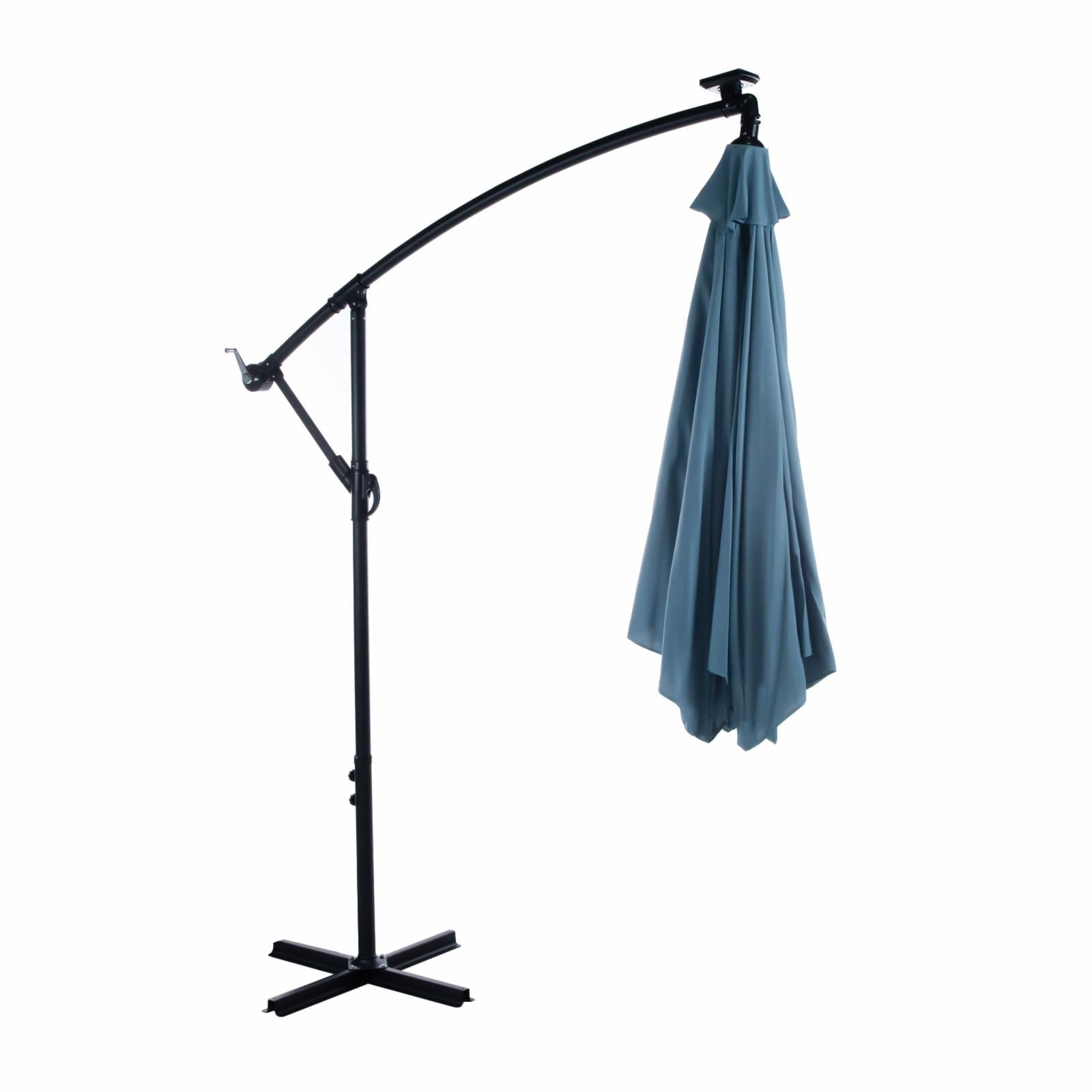 Relax outside day or night with our durable and chic light sapphire blue 10 feet patio cantilever umbrella. While the UV-resistant fabric canopy protects you from the sun's heat and harmful rays, a solar panel on top absorbs energy from the sun to power the umbrella's led lights. The design of the hand crank system makes the opening and closing of the umbrella more convenient, The metal base at the bottom is stable enough to hold the umbrella in place. Six rib cantilever provides more strength and balance, the umbrella is easy to install in a few steps and comes with detailed installation instructions.