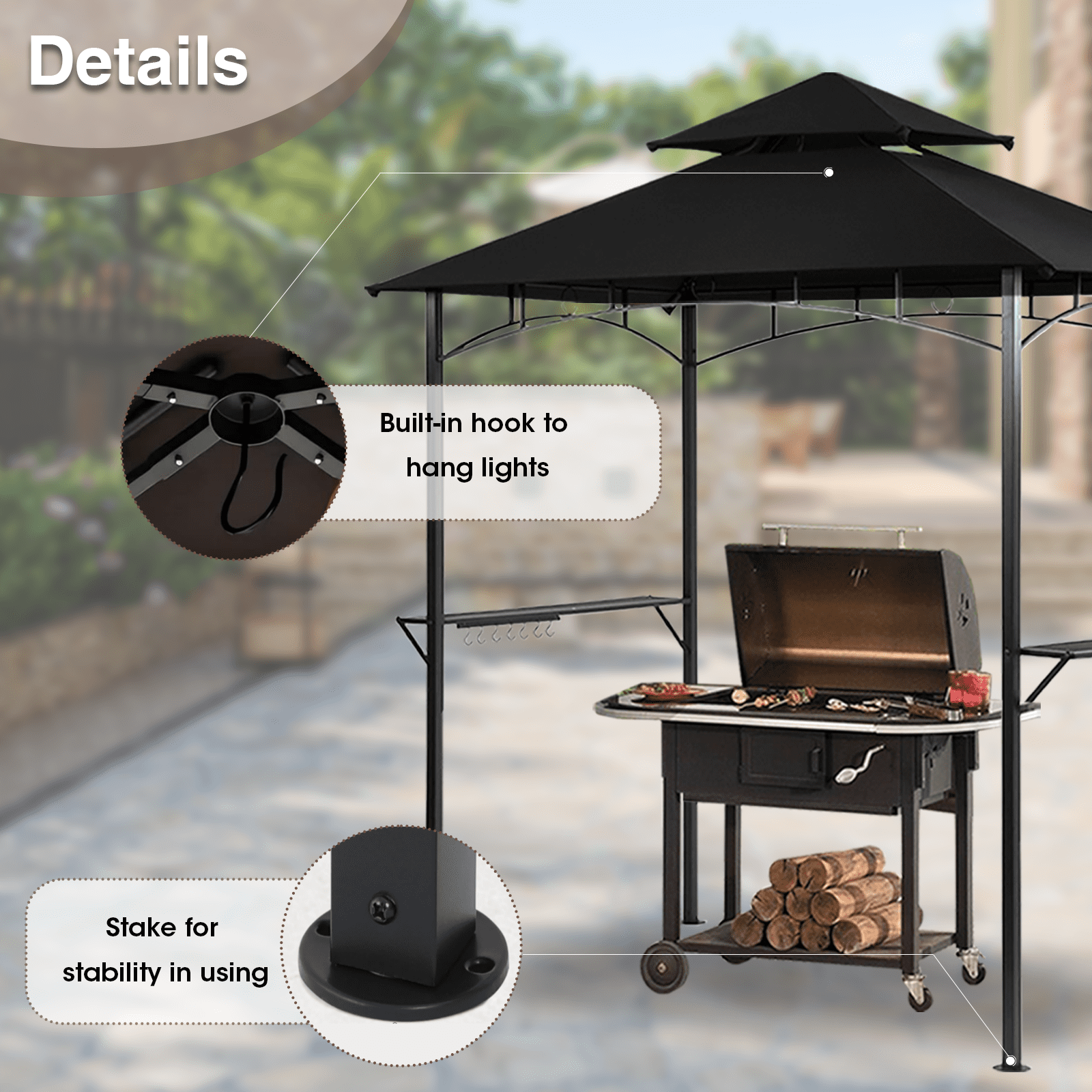 Grezjxc Grill Gazebo 8 x 5 Double Tiered Outdoor BBQ Grill Patio Canopy, Backyard Barbeque Tent with Extra Shelves, Black