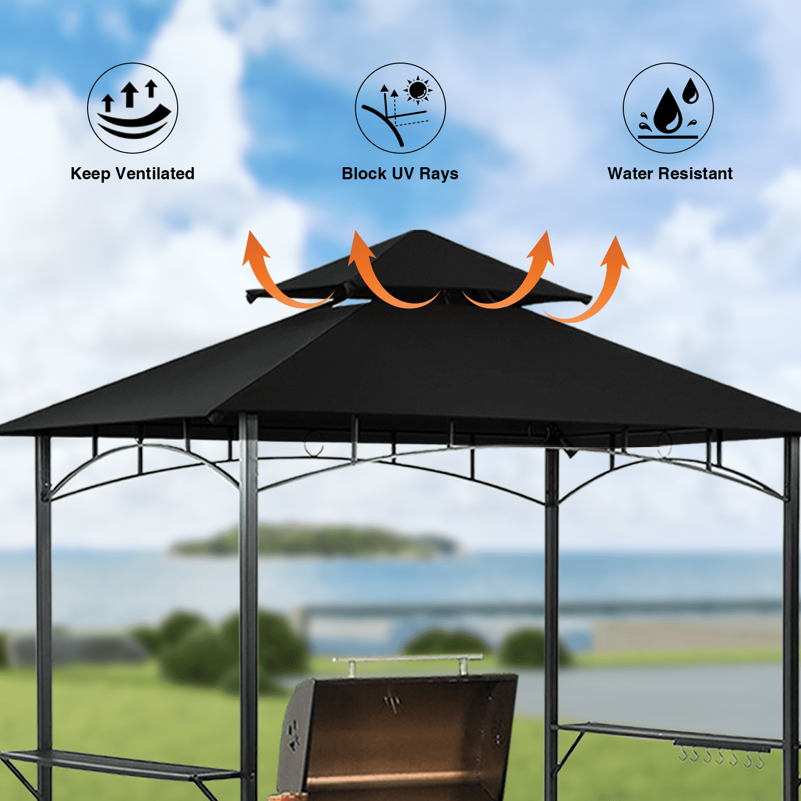 8' x 5' Grill Gazebo Steel Frame Outdoor Backyard BBQ Grill Gazebo with 2-Tier Soft Top Canopy.