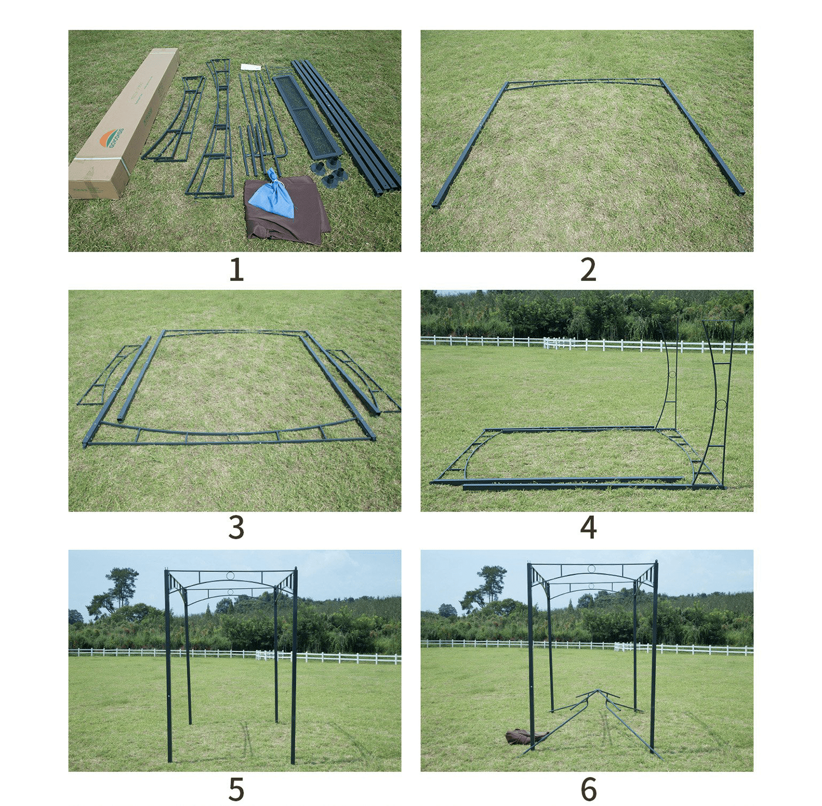 Multi-function: The barbecue pergola has partitions on both sides, so you don't need an extra table to put plates and spice bottles for ingredients on the side shelves. Hooks on one side are used to hang various grilling tools for your maximum convenience. The top of the grill gazebo is left with hooks that can be equipped with energy-saving lights for use, so you can keep track of your barbecue whether it's day or night.